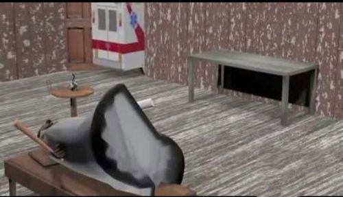 这个房间有一个1.5版本新更新的彩蛋,在墙上有一幅画这幅画碰掉后隔一段时间会自动回原位,画碰掉后有一个拉杆,点击拉杆后触发机关,书柜会移位打开一个密室。找到一本书放在密室中的台面上,会看到被手铐拷住的奶奶画面可能比较kb已打马赛克