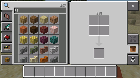 5、当收集足够的材料后就可以合成,点击方框最右边的三个小点,可以打开合成界面,左边可以选择需要合成的类型比如建筑、装备、物品等,选好材料后拖动到右边就可以合成对应的物品或者装备。