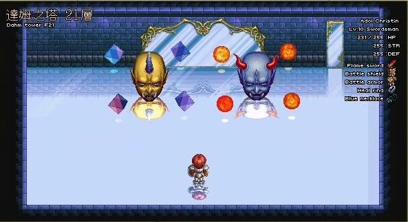第1层:从右侧门上至2层,获得治愈药、魔法镜与邪恶戒指。