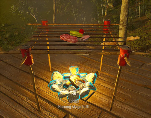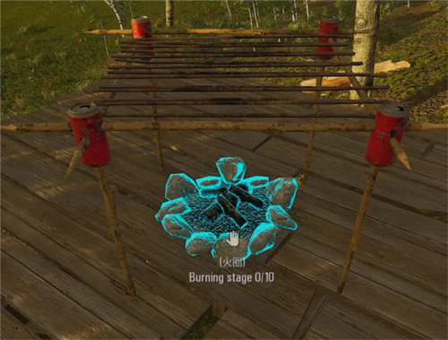 值得注意的是,当我们对准火圈或者壁炉时,会有一排英文提示:burning stage 5/10
