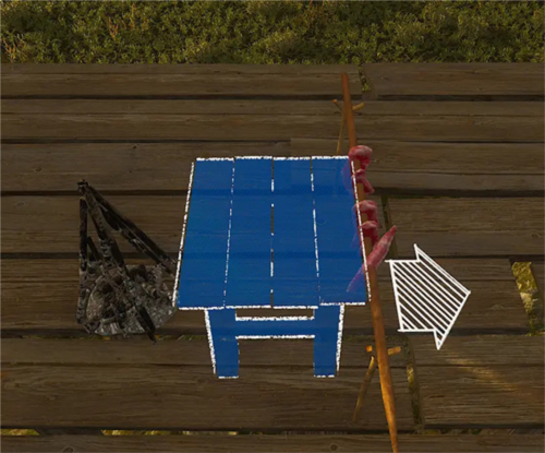 我们把壁炉制作完成后,在手工制作列表中的basebuilding那里找到小凳子的蓝图,然后将蓝图尽可能靠近壁炉放置,将箭头向反方向调整,蓝图放下之后,我们将串串竖放在蓝图与箭头之间靠近蓝图的缝隙里,OK,如果你完成了上述步骤,恭喜你,你已经可以烤出让别人羡慕嫉妒恨的串串了!此时只需要点火接着等1分钟即可!