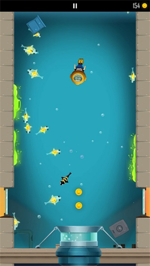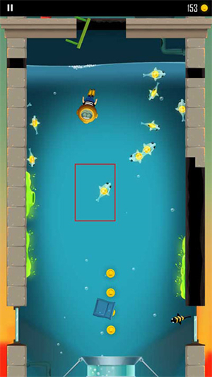 7、有一层玩家会进入到水池里,这里面的小鱼里面会有金币,玩家将小鱼全部吃完之后就可以从底下的管道出去;