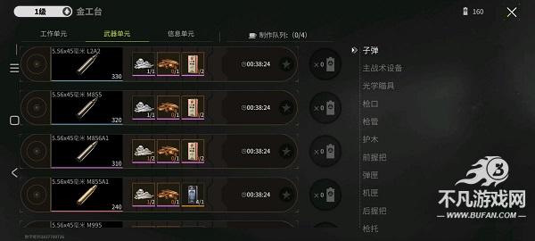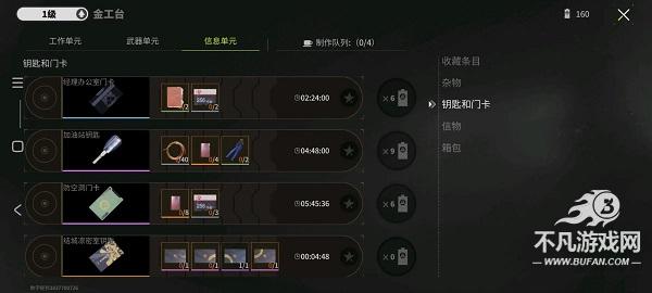 在游戏主界面下方的控制台中,点击“金工台”图标,即可轻松进入这一制造圣地。金工台内,一个庞大的物品制造系统展现在眼前,该系统被精心划分为四个单元:工作单元、武器单元、信息单元和拆解台。工作单元专注于头甲、药品、投掷道具等装备的打造,并支持低级杂物的升级与合成;武器单元则围绕枪械进行,子弹、配件、升级合成一应俱全;信息单元可制造高价值物资,如私人痕迹消除器、大容量收纳箱等;而拆解台则能将不需要或不想出售的物品拆解成基础零件或杂物,实现二次利用。若想了解物品制作的详细需求,可在金工台制作界面直接查看所需材料和时间,一目了然