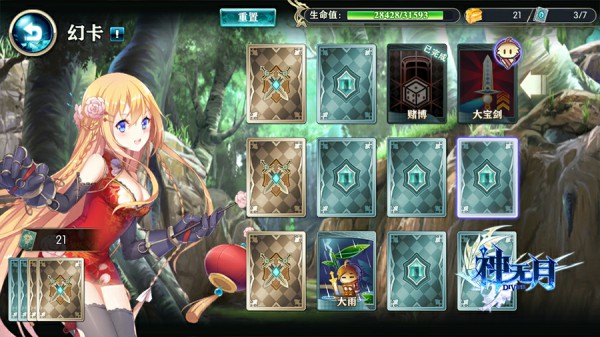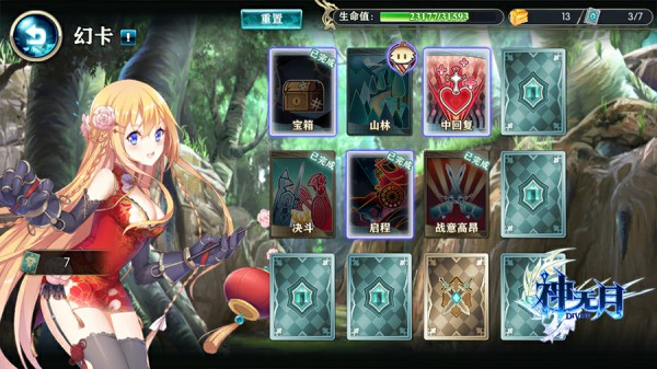 点击进入幻卡玩法,大小姐会先指引你开始选定今天的上场角色。幻卡玩法每天增加一次重置机会,如果觉得玩得不过瘾,灵魂石碎片还想再来一搭,那就重置再来一次吧~