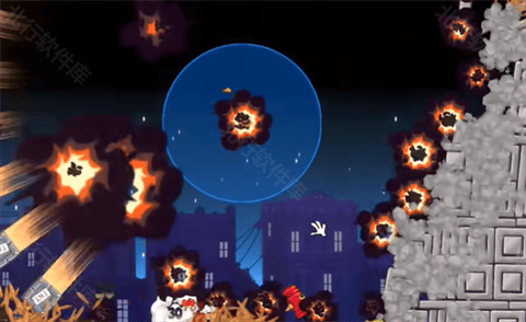 4、炸弹黑。全屏随机爆炸,最后在中心大爆炸,并且投掷一圈爆炸物。