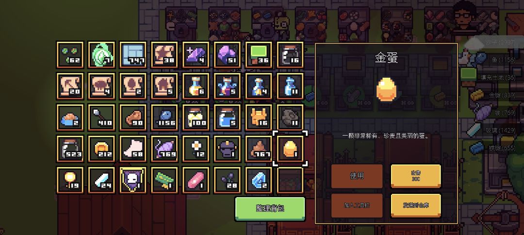 打开游戏,购买草地,在草地区域,放养白色的鸡。鸡会下蛋,除了白色的蛋,还会有一定概率的下金蛋,拾取获得金蛋。