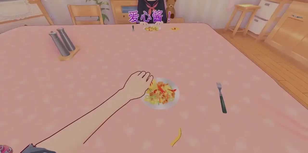 在玩家拿完剪刀回到厨房后,我们的米塔老婆就做好了丰盛的大餐!