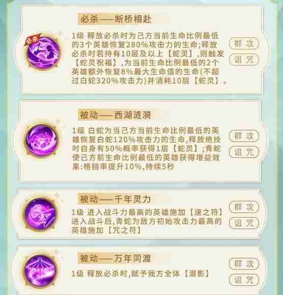 这个阵容的英雄获取难度也是比较低的,紧那罗/雨师/毕方三个辅助随意一个都能上阵,给己方提供治疗和增益BUFF,司命、九天玄女属于推主线就能获得的英雄,后续的升阶也不会缺英雄材料,值得培养。