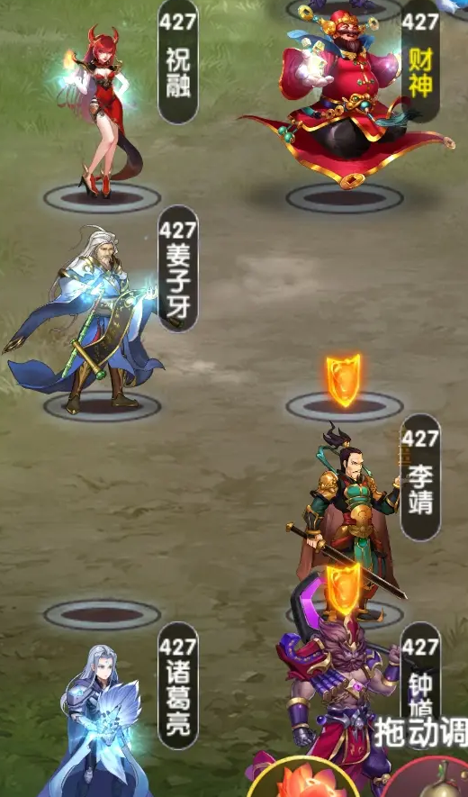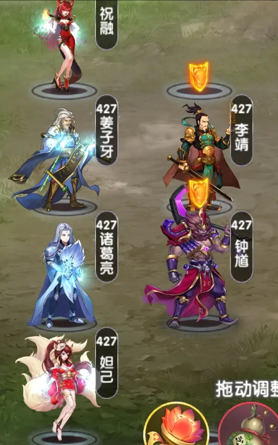 1、李靖+钟馗+祝融+姜子牙+诸葛亮+妲己