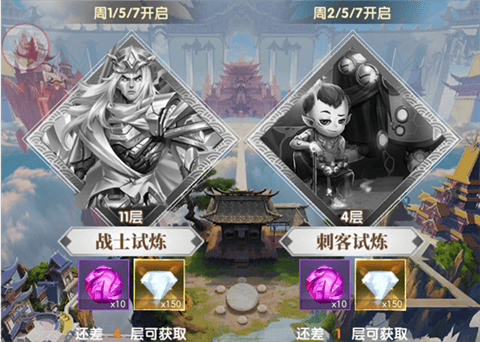 4、秘境的四族塔每天有层数限制,每天开放后记得打,打不过时根据敌方阵容变换站位,更换功能不同的英雄,会有奇效