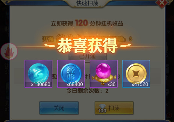 1、每天的战役快速扫荡一定要把次数买完,没终身卡每天3次,有终身卡每天6次。收获的资源主要用来英雄升级和普通装备强化