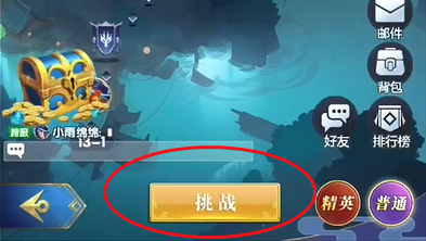 1、在游戏战斗界面,点击屏幕底部的挑战按钮