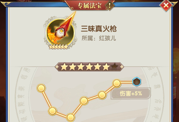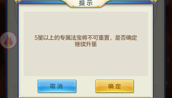 4、法宝6星前可免费重置升星,可利用这一特点,强化不同的英雄,来推图或者打竞技、秘境。6星以后消耗本体或万能高级法宝精华升级