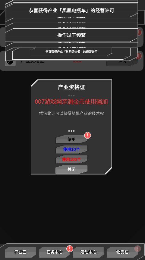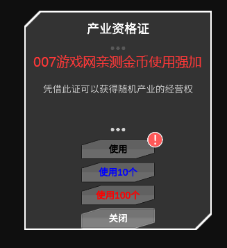 bug2输入后可获得99产业资格证+169金币制造