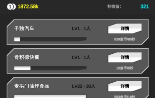 在这个游戏里,玩家将会体验到赚钱的艰辛,自己开店,自己雇员,看着自己的秒收益一点点上升,一种成就感油然而生不是吗?