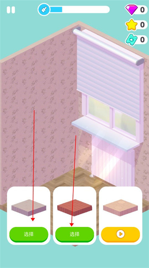 4、进入关卡后,在这里我们点击此处就可以开始装饰房间了