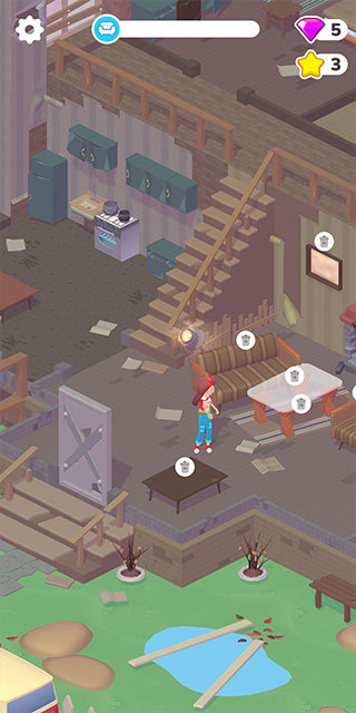 采用温馨的卡通风格,画面明快治愈,带来舒适的游戏体验,操作简单易上手,只需按照房屋的设计喜好清理房屋,装饰家具。