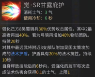 主动技能虽说消耗3气,然而觉醒后的效果能够回复最高1点士气。而且此体系的法术伤害频率颇高,在6秒内打出10次法术伤害并非难事。这就好比一个只需2气的技能,却带来了极其可观的buff收益。其中,陆逊和周瑜分别能获得70%的提升,其余角色则提升30%。不仅如此,法骑部队还额外获取40%的双防,以及拥有具备20%法术抗性的护盾。在面对诸如鬼谋郭嘉、鬼谋蔡文姬这类群攻或远程消耗型的法术攻击时,能够抵消相当数量的伤害。