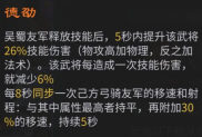 更重要的是被动的第二次效果,那就是同步全体弓骑兵移速和射程,虽说会逐渐降低移速但是相对的还会增加30%移速,那么单头来只要吴国太不死,大家的移速至少都还是开局的水平(甚至更快)。