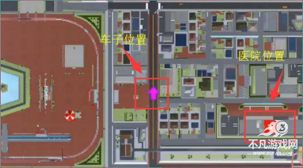 3、可以打开地图看见箭头的位置就是救护车的位置,医院的位置就是十字号的位置;