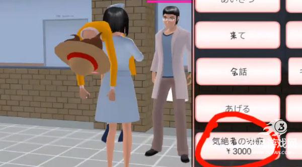 4、来到医院后找到站在门口的NPC选择救治功能;