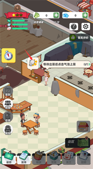 1、玩家需要招募厨师、服务员、收银员等不同职位的员工,并根据他们的能力和特长进行合理调派。