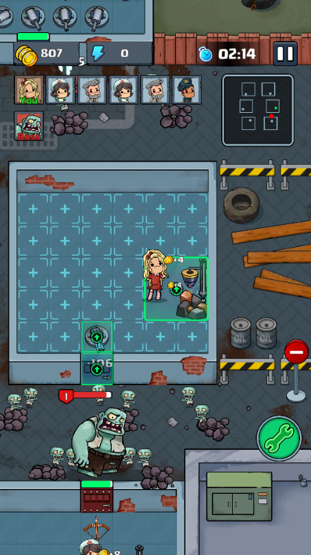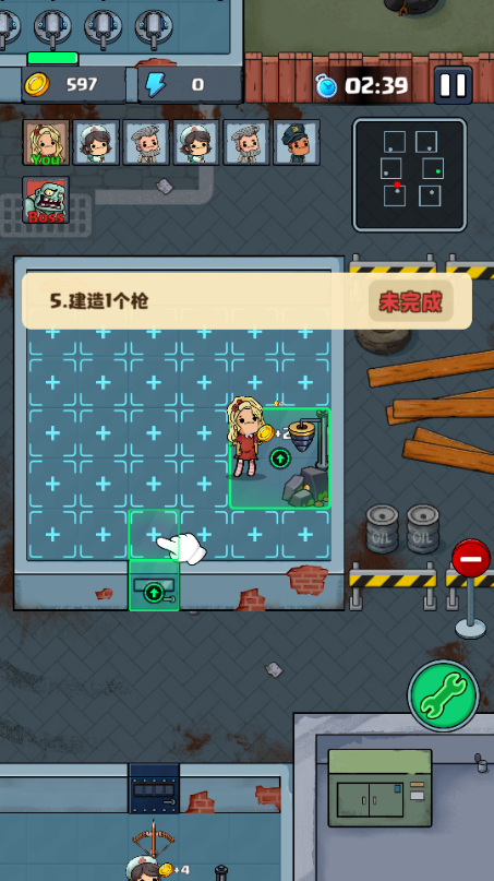 2.简单的塔防玩法:通过放置不同建筑来进行战斗,随着发展来抵御僵尸的攻击,完成战斗。
