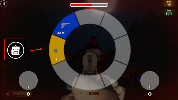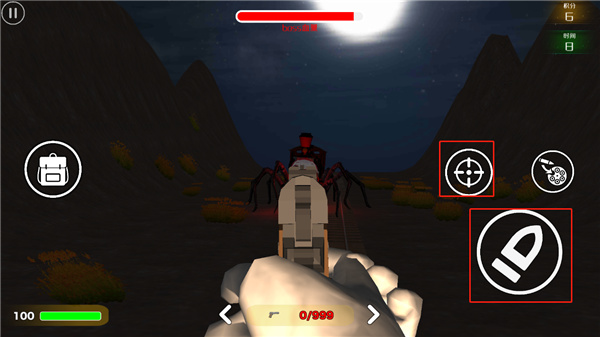 6、在右边这里有一个开枪、瞄准以及换子弹,玩家可以根据自己的需求进行使用。
