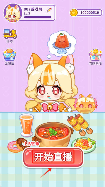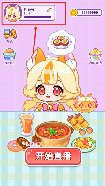 1、进入游戏后,点击“开始直播”按钮,准备开启你的吃播旅程。