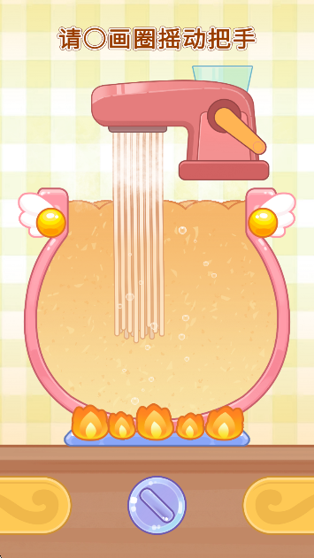 4、待汤底煮沸之后,需要手动旋转装置上的把手,把面条慢慢压入锅中。