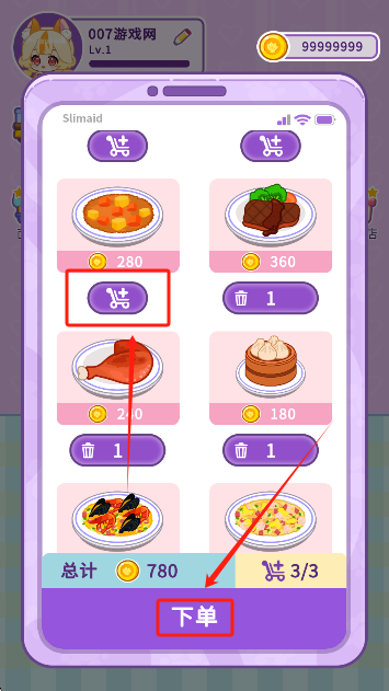 1、打开游戏点击外卖的图标可以看到许多的餐品