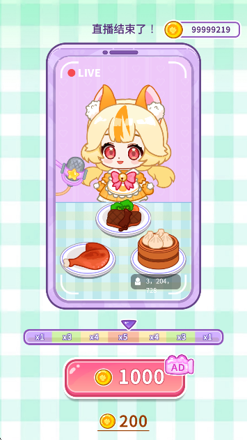 5、每次直播结束后系统会发放相应的奖励道具或金币。