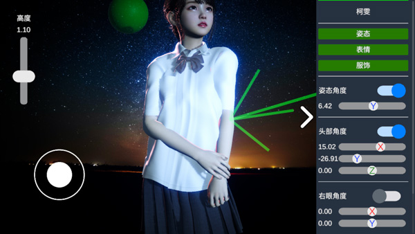 3、选好后点击镜头,调整模特角度;