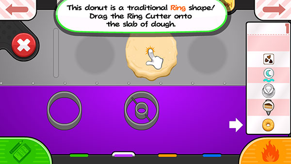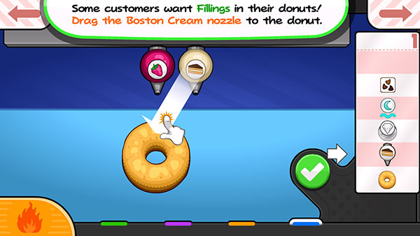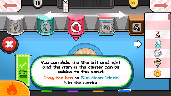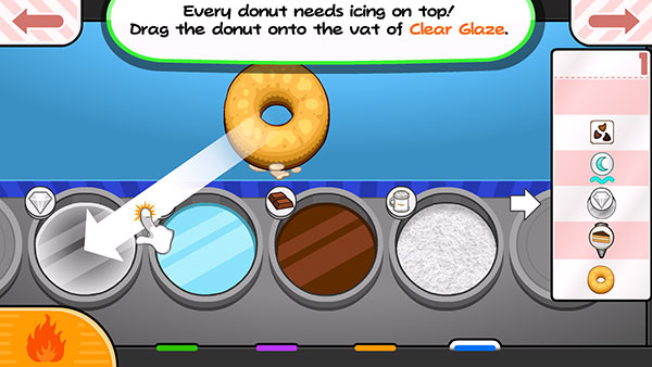 5、还有配料,滑动切换至顾客想要的配料,将其撒在甜甜圈上。