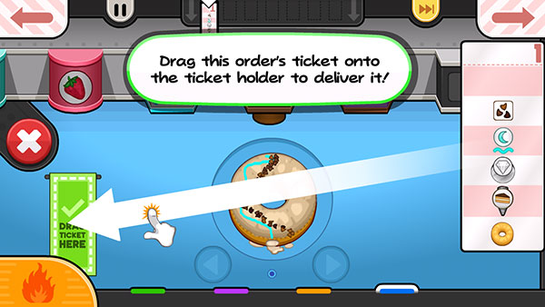 6、完成甜甜圈的制作后,将订单拖动至左侧,即可交付给顾客。