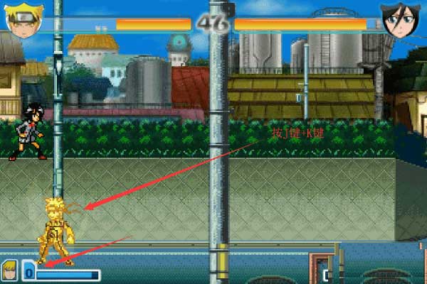 4、能量满3格后,同时按J键和K键,即可变身成为金色鸣人。