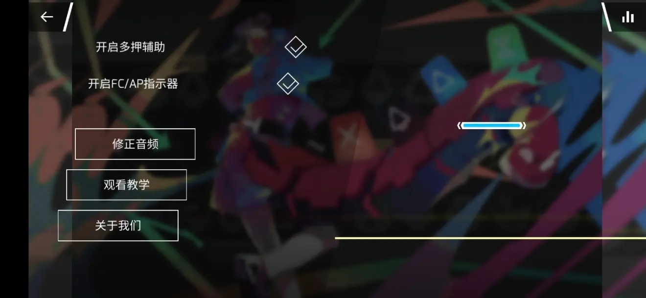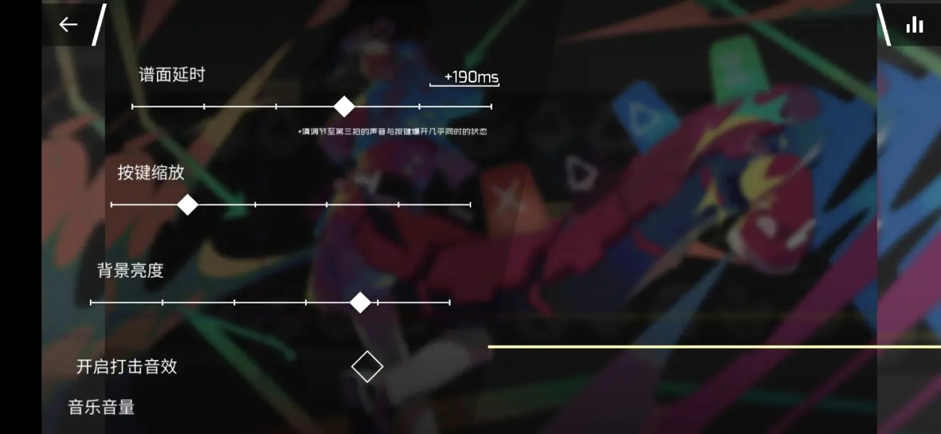 点击曲包加载界面右上角去调一下延迟!同时也可以根据自己的需要调整别的设置