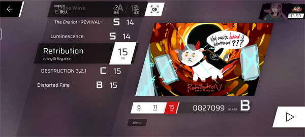 值得一提的是,选谱的顺序展示在曲绘预览的顺序就是游玩的顺序,你可以选择性得把不容易失误的谱子放在后面放止搞心态。