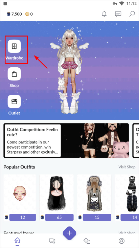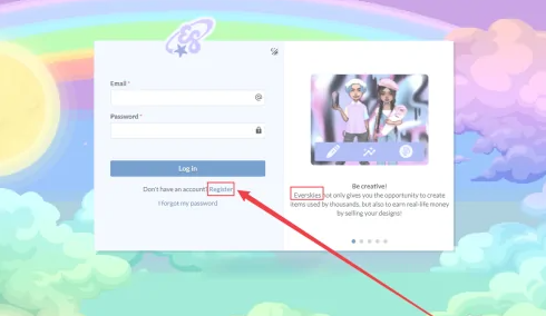 1、打开everskies,进入游戏后,点击Wardrbe开始;
