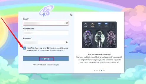 3、勾选同意注册条款,点击Sign up完成注册