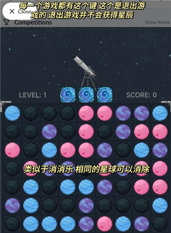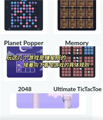 3、玩如图的这几个游戏是可以获得星辰的,接着向下看是游戏的具体规则。