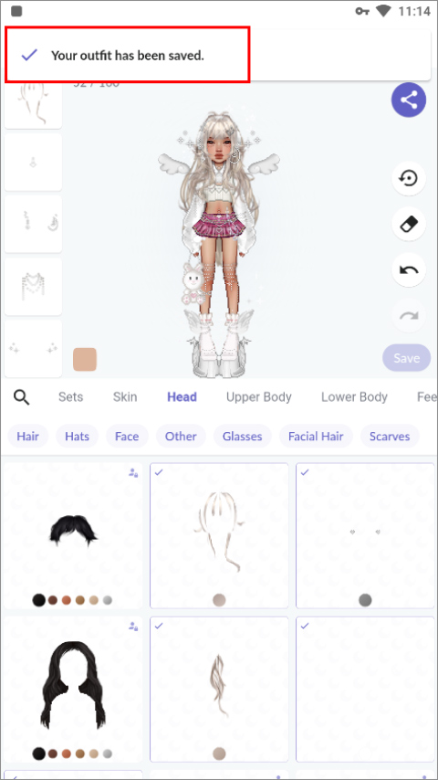3、然后等待一会,当上方出现“Your outfit has been saved”时即保存成功。