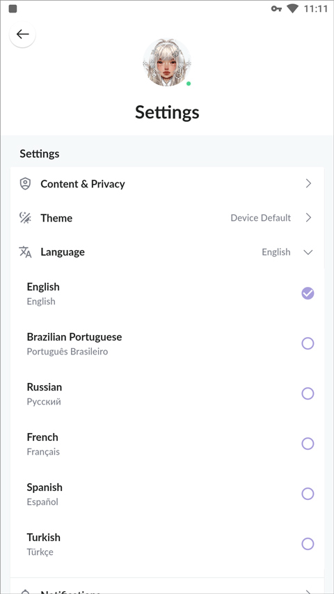 2、其次在设置中把语言改为简体中文。