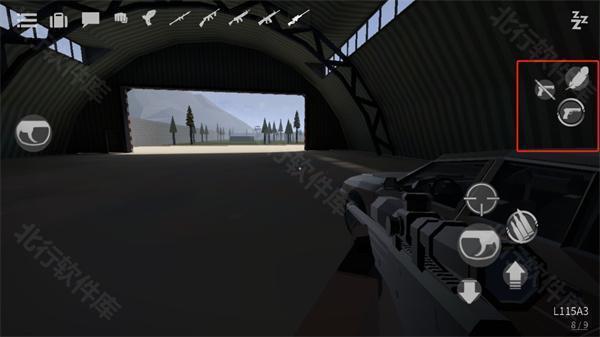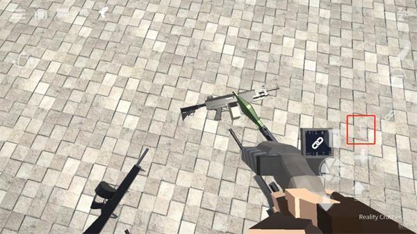 1、想要拿枪就必须先找到一把枪,找到枪后需要将准心放到枪上,这时屏幕左边会出现一个手指按钮,按住手指按钮即可拾取;