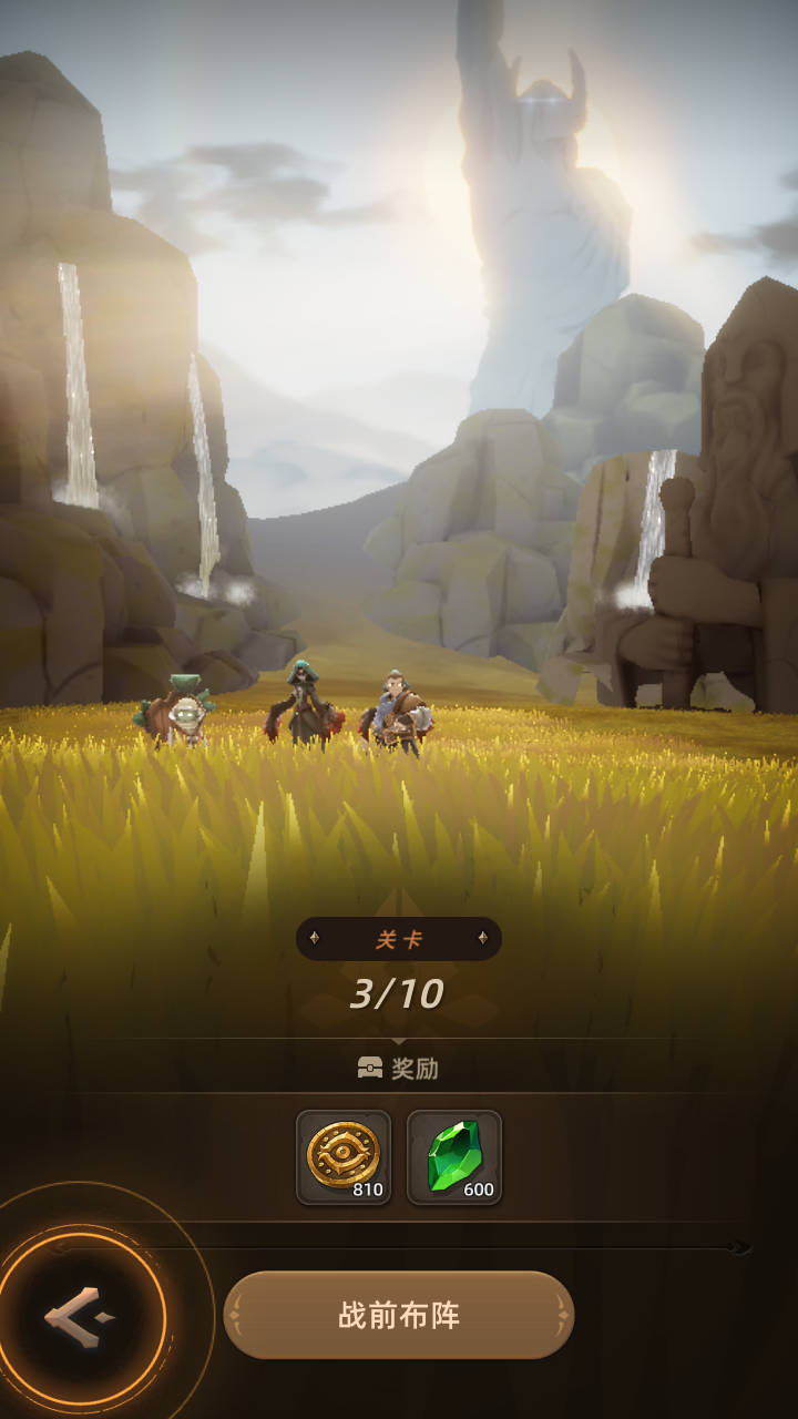 2、进入游戏,就开始了游戏的主线剧情,立刻需要进入战斗,需要您完成英雄的阵型放置,即可自动开打。