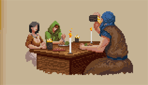 1.采用了像素风格的插画来展现游戏中的各种情形,别具一格。