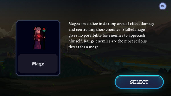 2、选择职业后会出现相应的职业介绍,如果确定玩这个职业,点击右下角的“select”即可。