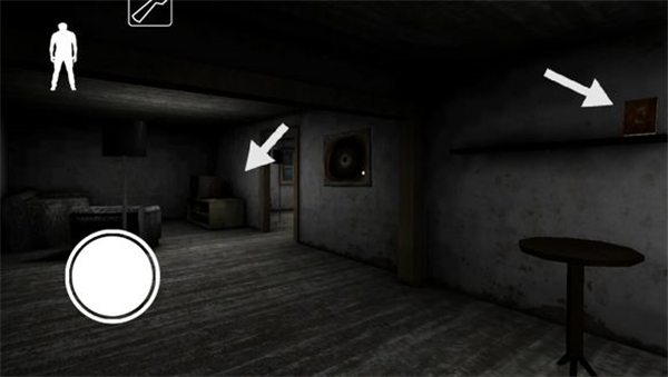 下楼梯后左边的地板上有一根黑线,从上面走过铃铛会响,需要注意。楼梯旁的柜子里可以躲,柜子对面有一个门,里面可能刷东西。柜子旁边有一个门通向地下室由于画面较暗
