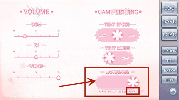 2、在界面中的图示位置,选择简体字,即可成功将游戏语言设置为中文。