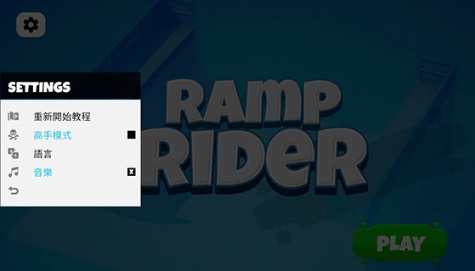 1、打开坡道滑板游戏,进入游戏主界面,首先我们选择左上角的齿轮图标进入设置界面,
